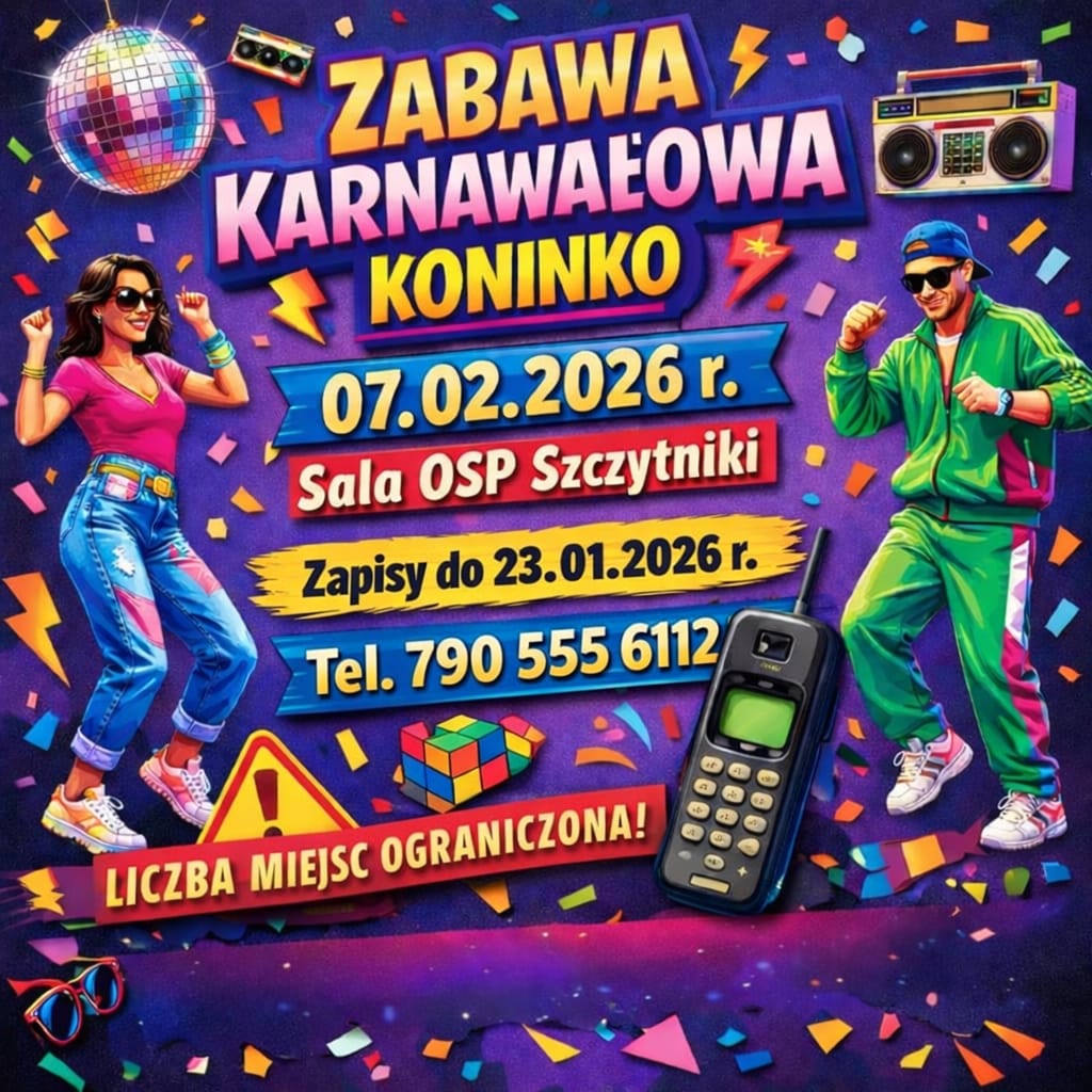 Drodzy Mieszkańcy Koninka, Karnawał to idealny moment, żeby spotkać się, potańczyć i po prostu dobrze się bawić. Dlatego zapraszamy mieszkańców Koninka…