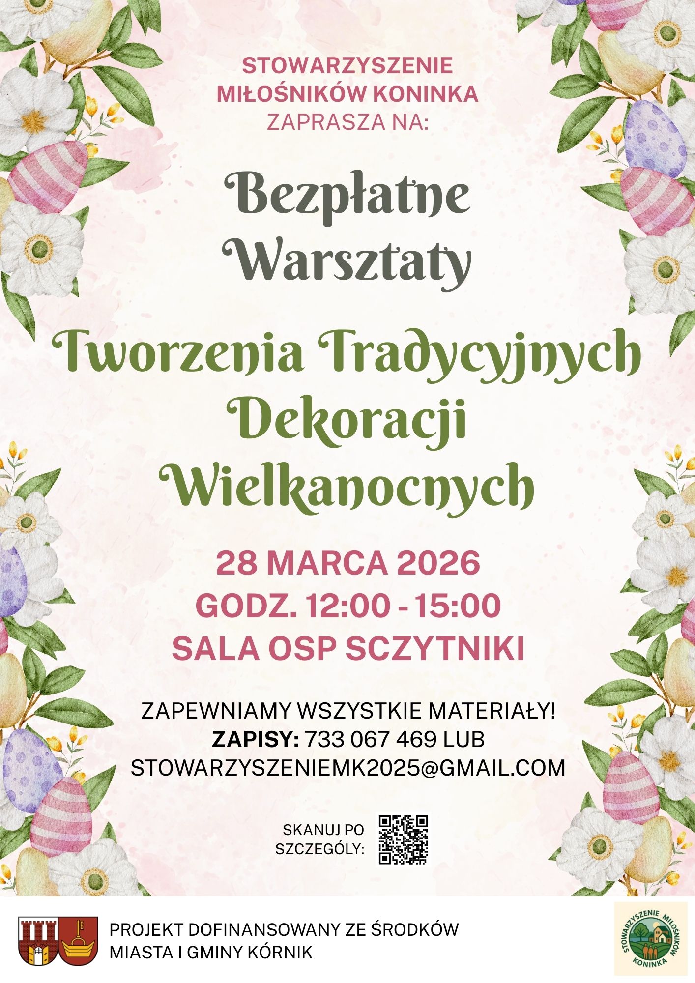 Drodzy Mieszkańcy Koninka, Z dużą radością zapraszam Was na bezpłatne Warsztaty Tworzenia Tradycyjnych Dekoracji Wielkanocnych, które odbędą się dzięki środkom pozyskanym…